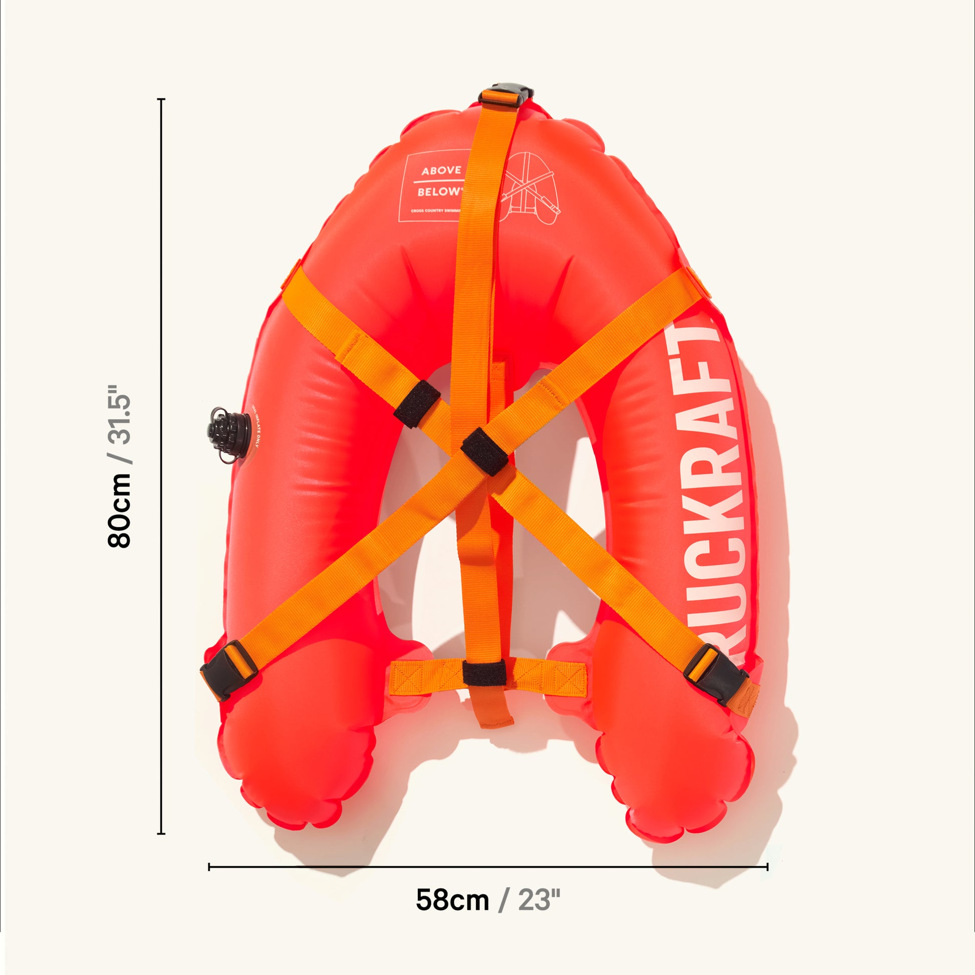 The Raft is only available separately in high visibility orange to maximise your safety in the water when combined with your other gear and waterproof pack.